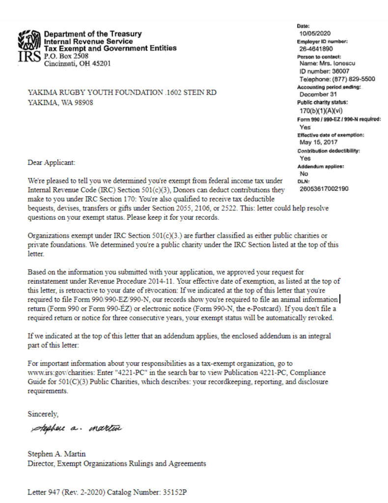 • IRS 501c3 Form